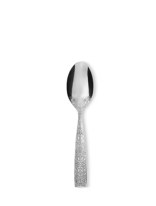De Alessi Dressed dessertlepel is ontworpen door Marcel Wanders en is aan één kant voorzien van een gestileerd patroon. De roestvrijstalen vork is 17 cm lang. Gebruik de lepel voor het eten van gebak of desserts.