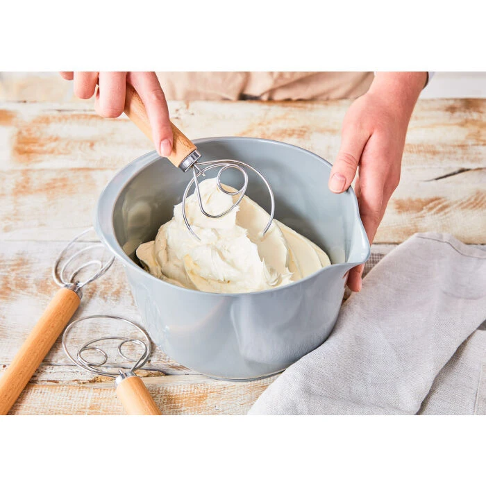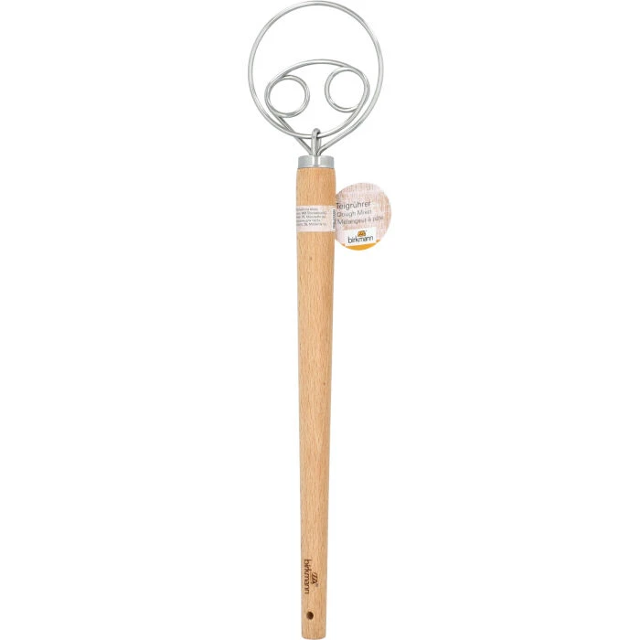 De Birkmann Deense deegklopper met dubbele lus is gemaakt van roestvrijstaal met een houten handvat en heeft een lengte van 34 cm. De klopper is speciaal vormgegeven voor het mengen van bijvoorbeeld brooddeeg, omdat het deeg niet aan de klopper blijft plakken.