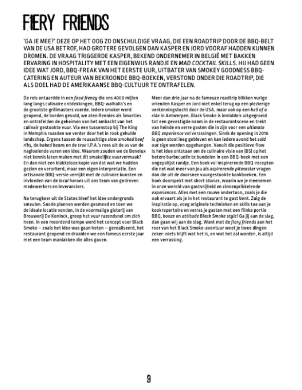 Naast blow-your- socks-off recepten voor grill of smoker, ook award winning cocktails van Belgiums Best Bartenders, een goede dosis Tasty Travels en alle need-to-knows om thuis te vlammen.