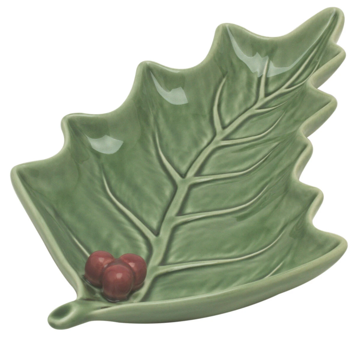 De Bordallo hulstblad schaal is gemaakt van geglazuurd aardewerk. De schaal is 27,5 cm lang, 15,5 cm breed en 3 cm hoog. Gebruik de schaal voor het serveren van koekjes of andere lekkernijen.