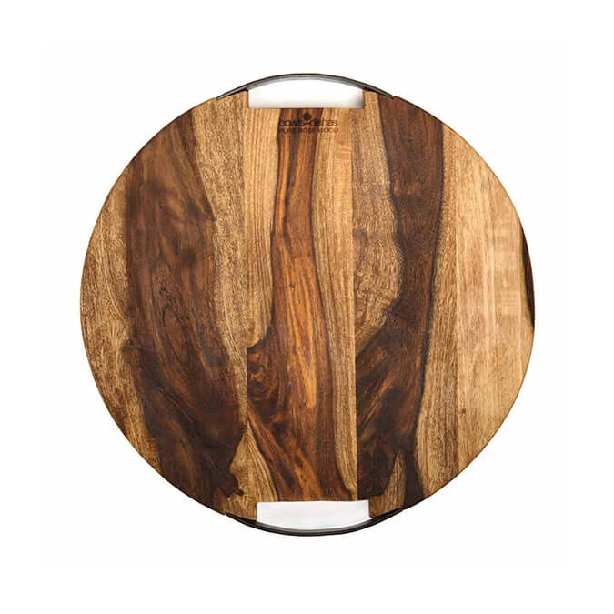 Stoer en warm tegelijk: de Bowls and Dishes Rose Wood ronde serveerplank met metalen handvat voorziet uw gerechten van een solide ondergrond en unieke presentatie. De plank is voorzien van twee stevige grepen in een contrasterende zwarte kleur. De plank is vervaardigd van Sheesam hout en heeft een afmeting van 39 x 4 cm. Gebruik de Bowls and Dishes Rose Wood ronde serveerplank met metalen handvat voor het opdienen of presenteren van gerechten.