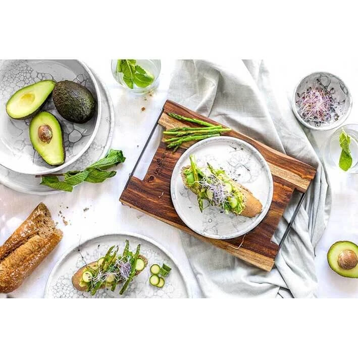 Stoer en warm tegelijk: de Bowls and Dishes Rose Wood serveerplank met metalen handvatten voorziet uw gerechten van een solide ondergrond en unieke presentatie. De plank is voorzien van twee stevige grepen in een contrasterende zwarte kleur. De plank is vervaardigd van Sheesam hout en heeft een afmeting van 40 x 30 x 4 cm. Gebruik de Bowls and Dishes Rose Wood serveerplank met metalen handvatten voor het opdienen of presenteren van gerechten.