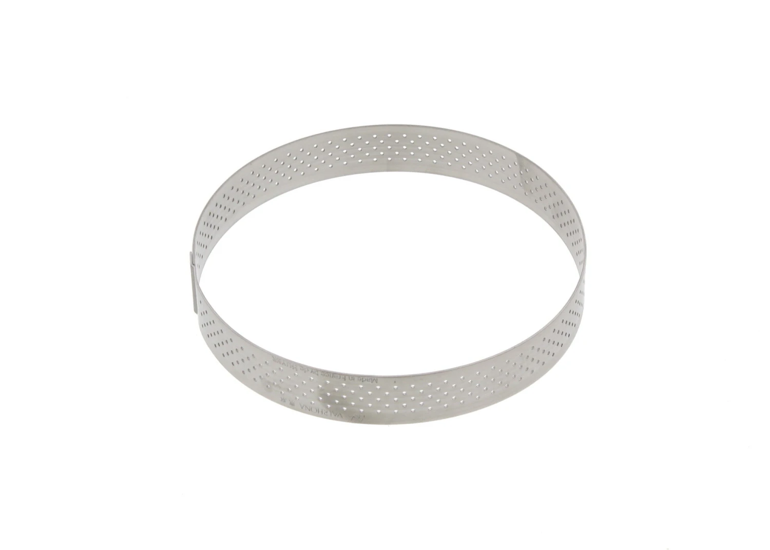 De De Buyer taartring is gemaakt van roestvrij staal, heeft een diameter van 12,5 cm en is 2 cm hoog. De taartring is geperforeerd waardoor uw taarten en quiches een knapperige en goudbruine korst krijgen.