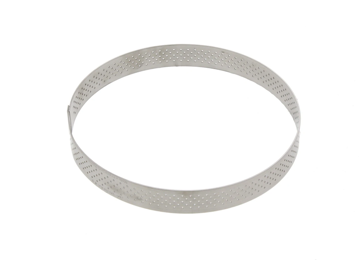 De De Buyer taartring is gemaakt van roestvrij staal, heeft een diameter van 15,5 cm en is 2 cm hoog. De taartring is geperforeerd waardoor uw taarten en quiches een knapperige en goudbruine korst krijgen.