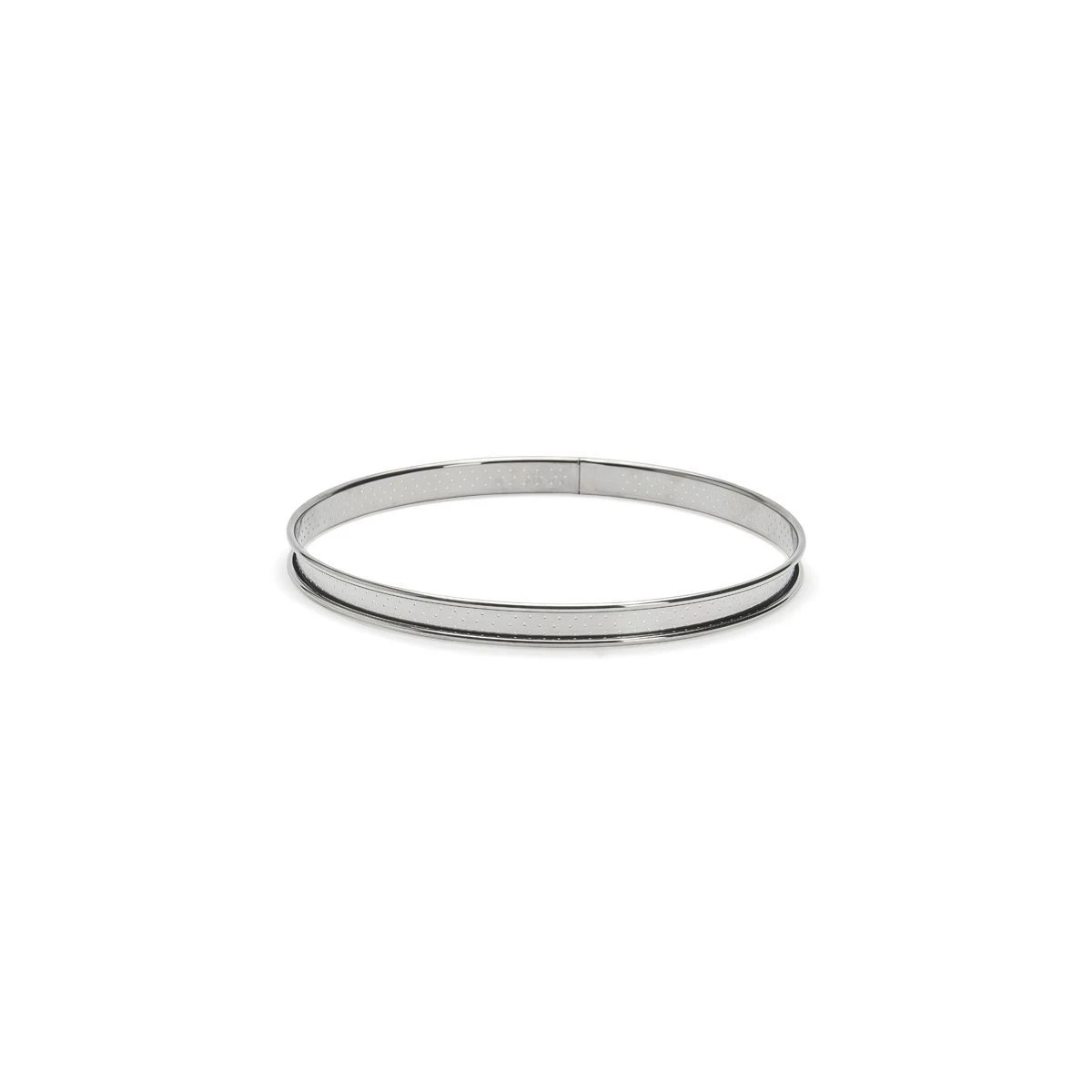 De De Buyer taartring is gemaakt van roestvrij staal, heeft een diameter van 24 centimeter en is 2 cm hoog. De taartring is geperforeerd waardoor uw taarten en quiches een knapperige en goudbruine korst krijgen.