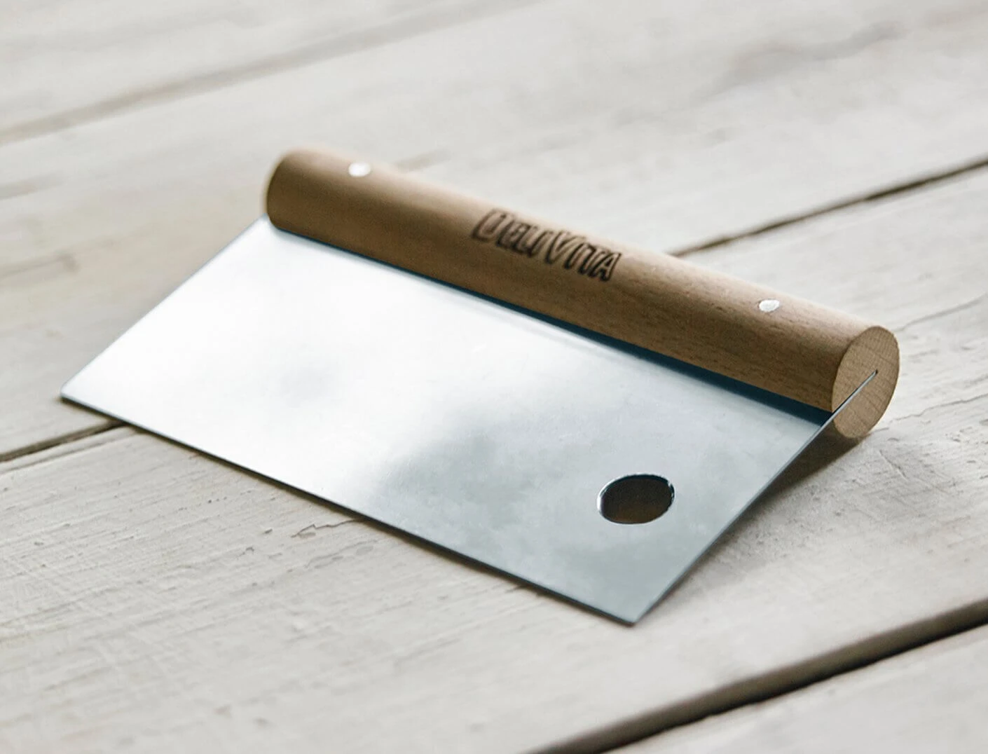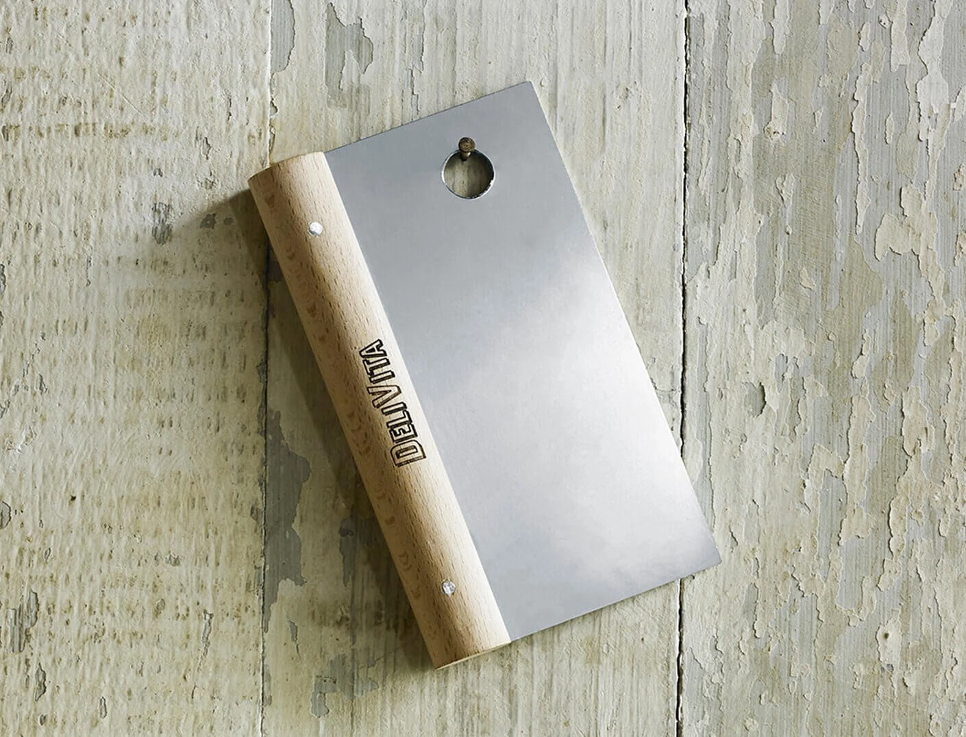 Met de roestvrijstalen Delivita deegschraper verdeelt u vers pizza- en brooddeeg. Dankzij het rechte lemmet beweegt het mes zich moeiteloos door het stevigste deeg. Het mes heeft een afmeting van 15 x 9 cm en is afgewerkt met een lichte wax-finish. De handgemaakte Delivita deegschraper is voorzien van een brede houten handgreep en een handig ophangoog. Gebruik voor het verdelen en bewerken van verse deeg.