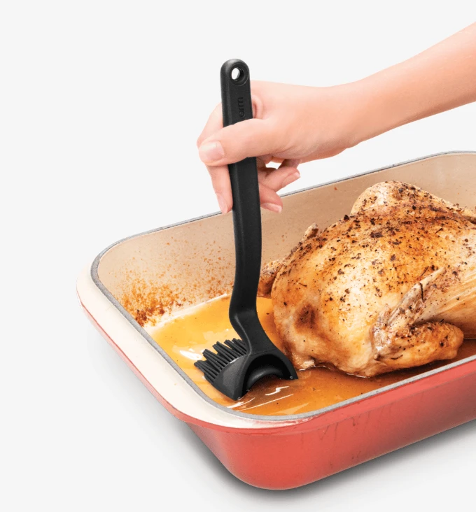 De Dreamfarm Brizzle bakkwast is gemaakt van nylon kunststof en silicone en heeft een lengte van 28 centimeter. De silicone borstelharen zorgen voor een gelijkmatige verspreiding van de olie, gesmolten boter of eigeel.