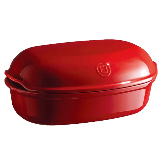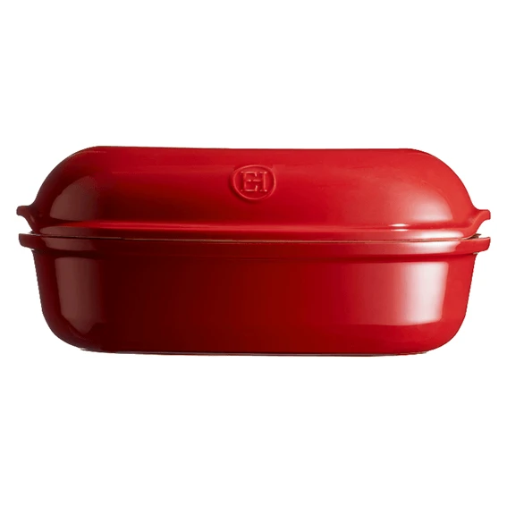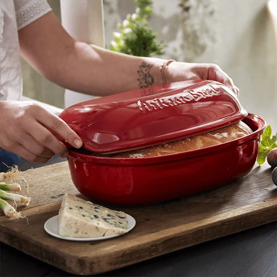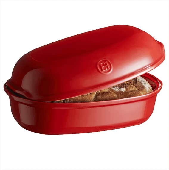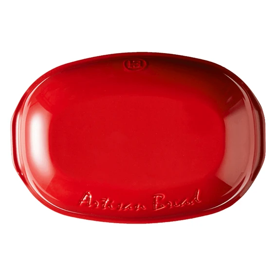 De Emile Henry ‘Le Pain Artisan’ broodbakpan is gemaakt van rood geglazuurd aardewerk. De pan heeft een lengte van 34 cm, een breedte van 22 cm en is 15 cm hoog. De binnenmaat is 31 cm lang, 19,5 cm breed en 14 cm hoog, en dat is dus ook de maximale grootte van een brood dat u kunt bakken. Dankzij het materiaal van de vorm bakt u brood met een krokante korst en een zachte binnenkant.