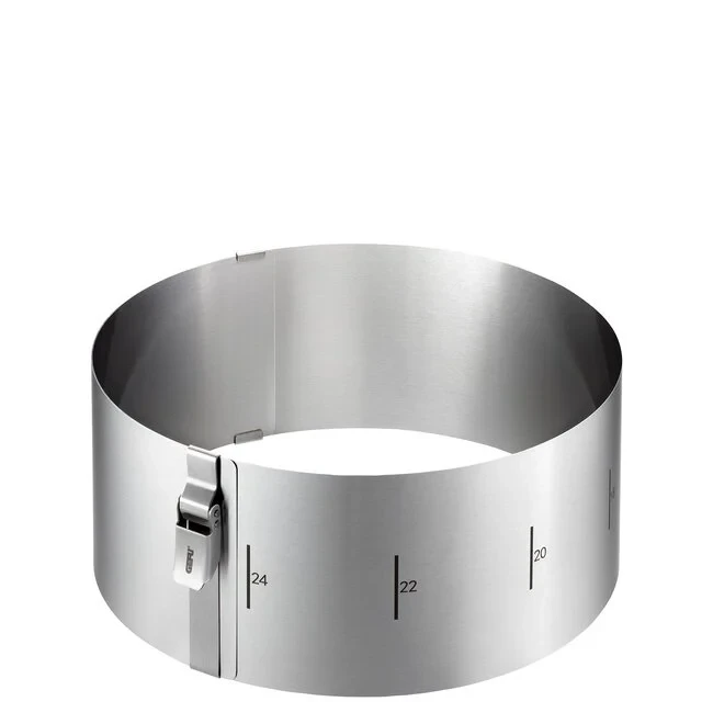 De Gefu Tondo verstelbare taartring heeft een variabele diameter van 16 – 30 cm en is met 10 cm extra hoog. De vorm is van roestvrij staal gemaakt en is daardoor erg robuust. Door het gebruik van roestvrij staal wordt de warmte van de oven snel en gelijkmatig doorgegeven aan uw taart. Gebruik de taartring voor het bakken van zoete en hartige taarten, en voor bescherming van het baksel tijdens transport.