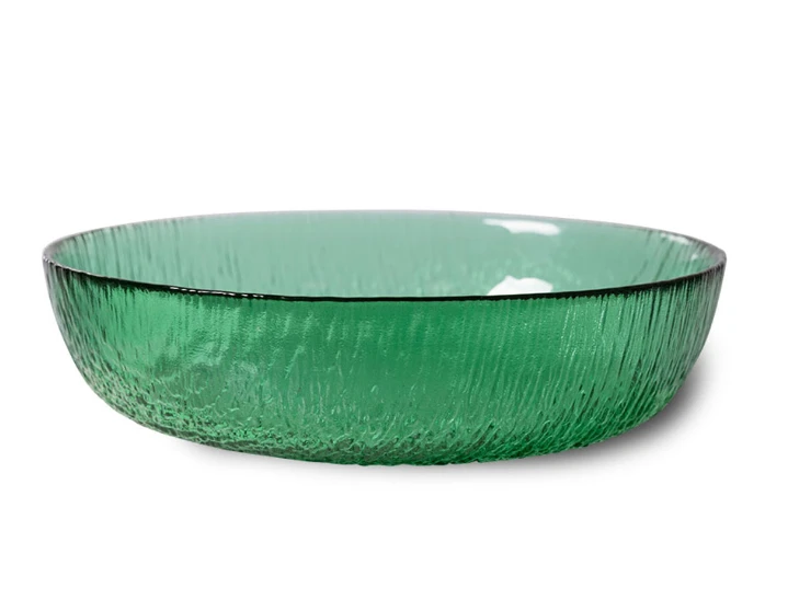 De HK Living The Emeralds saladeschaal is gemaakt van groen glas. De schaal heeft een diameter van 18,5 cm en is 5 cm hoog. Gebruik de HK Living The Emeralds kom voor het serveren van salades of andere gerechten.