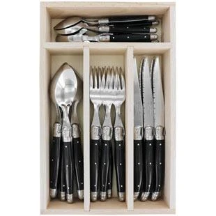 De Jean Dubost bestekset is gemaakt van roestvrijstaal met een heft van kunststof in het zwart, de set komt met 6 messen, 6 vorken, 6 lepels en 6 theelepels. Gebruik de set als luxe toevoeging aan uw (diner)tafel.