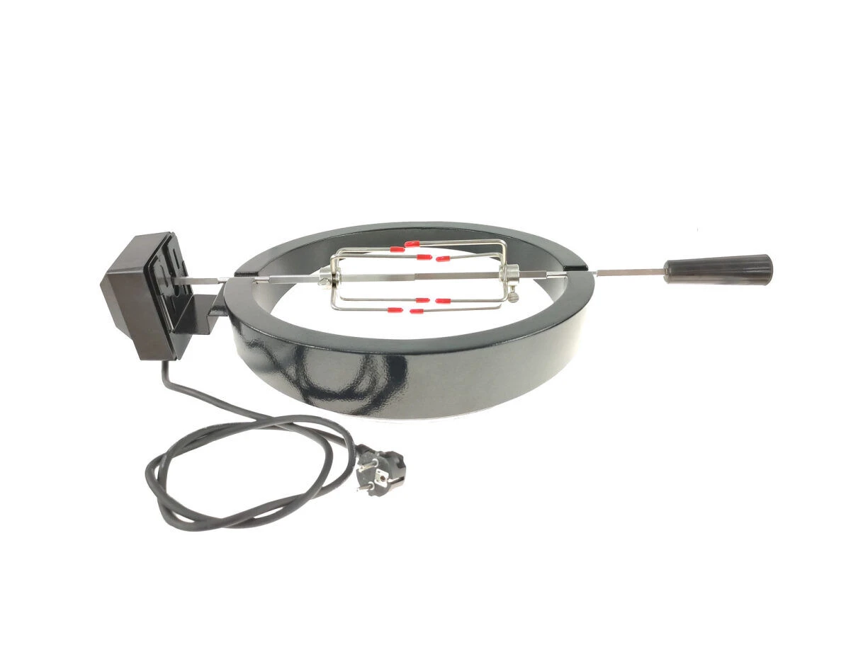 De Keij rotisserie is een barbecue spit gemaakt voor de Keij Kamado. Met deze rotisserie maakt u op een makkelijke manier kip, rollade of andere gerechten boven uw barbecue. De ring is gemaakt van staal en het spit van roestvrijstaal zodat deze gemakkelijk schoon te maken is. Deze rotisserie is te gebruiken in combinatie met 21 inch kamado’s, combineer de rotisserie met de grillmand.