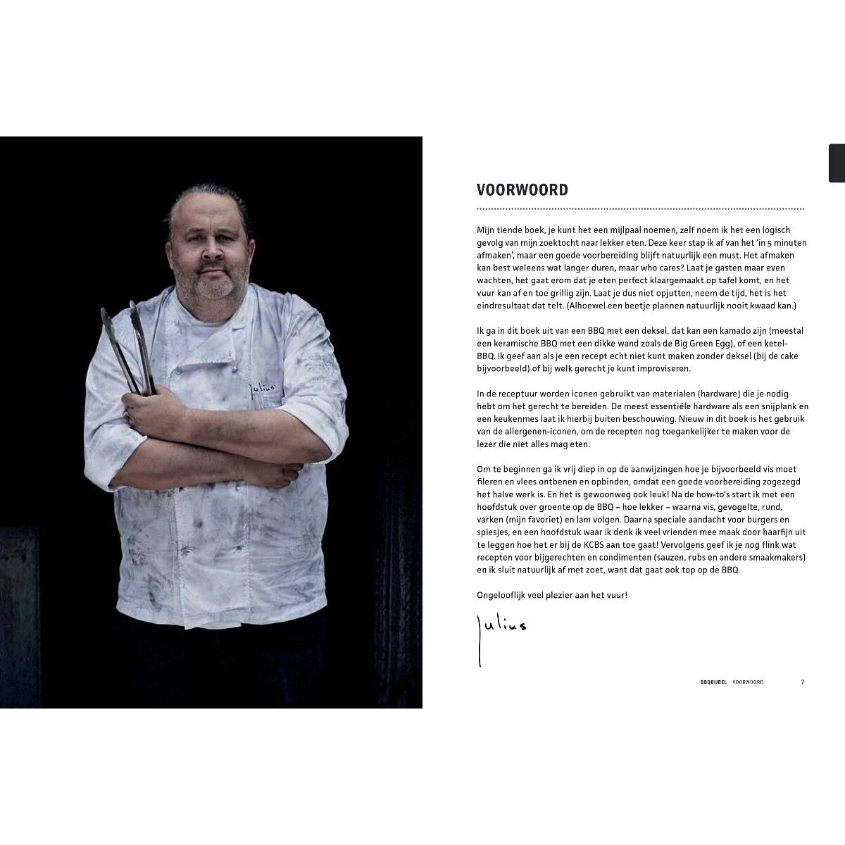 In BBQbijbel laat barbecuekoning Julius Jaspers aan de hand van duidelijke stap-voor-stapfoto’s en heldere iconen zien wat er allemaal mogelijk is en geeft hij meer dan 200 van zijn meest geliefde recepten prijs.