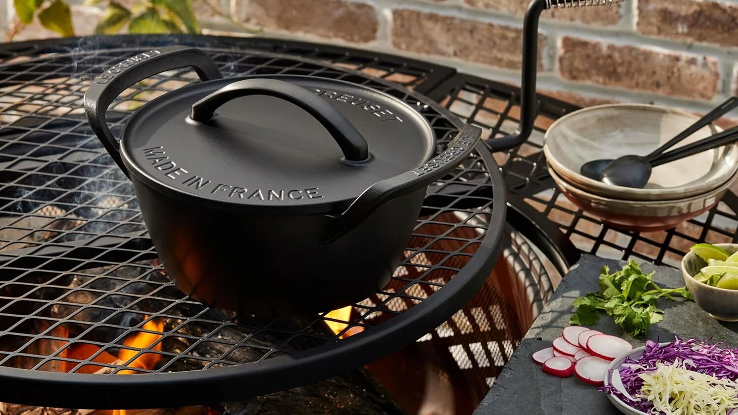 De Le Creuset BBQ Outdoor braadpan is vervaardigd uit matzwart geëmailleerd gietijzer, heeft een diameter van 25 cm en een inhoud van 4 liter. De braadpan is geschikt voor gebruik op bijvoorbeeld de barbecue of open vuur tot een temperatuur van 450°C. Gebruik voor het bereiden van bijvoorbeeld stoofschotels of het bakken van brood op de barbecue.