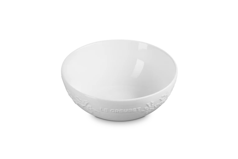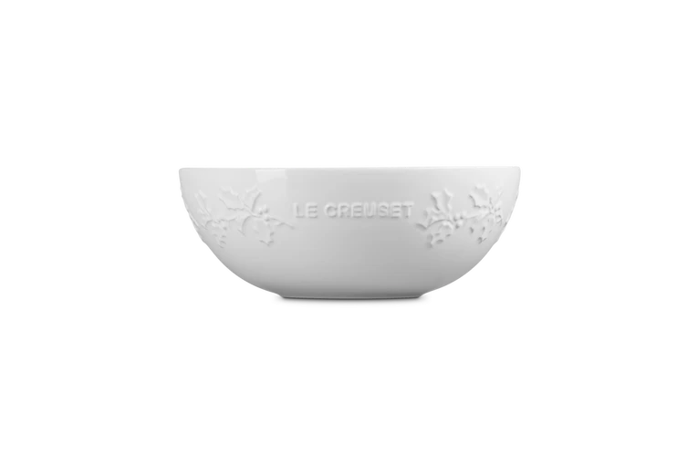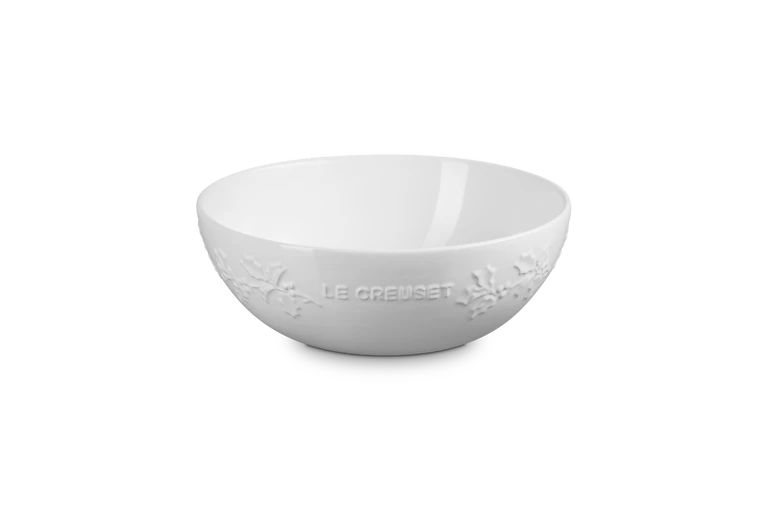 De ronde schaal van de Le Creuset Holly Collection is gemaakt van geglazuurd aardewerk. De binnendiameter van de schaal is 25 cm en hij heeft een ruime inhoud. Gebruik de schaal om bijvoorbeeld salades of soep in op te dienen. Aan de buitenzijde is de schaal voorzien van hulstbladeren in reliëf. Daarmee past de Holly Collectie uitstekend in het winterseizoen.