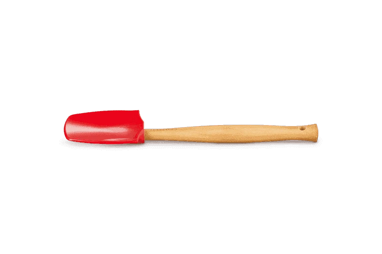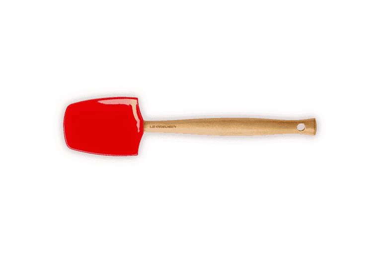 De rode Le Creuset grote spatel is gemaakt van hout en heeft een siliconen blad, waardoor de spatel niet krast. De spatel heeft een platte en bolle zijde en heeft een lengte van 28 cm. De breedte van het blad is 7 cm.