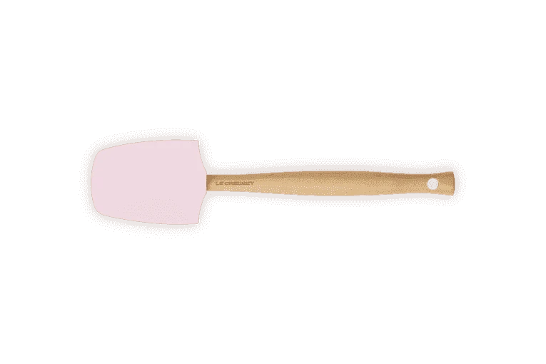 De roze Le Creuset grote spatel is gemaakt van hout en heeft een siliconen blad, waardoor de spatel niet krast. De spatel heeft een platte en bolle zijde en heeft een lengte van 28 cm. De breedte van het blad is 7 cm.