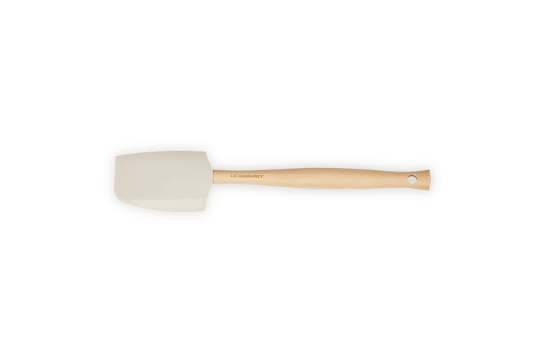 De Le Creuset Premium Medium spatel is gemaakt van hout en heeft een siliconen blad in de kleur meringue, waardoor de spatel niet krast. De spatel heeft een platte en bolle zijde en heeft een lengte van 28,5 cm. De breedte van het blad is 5,8 cm.