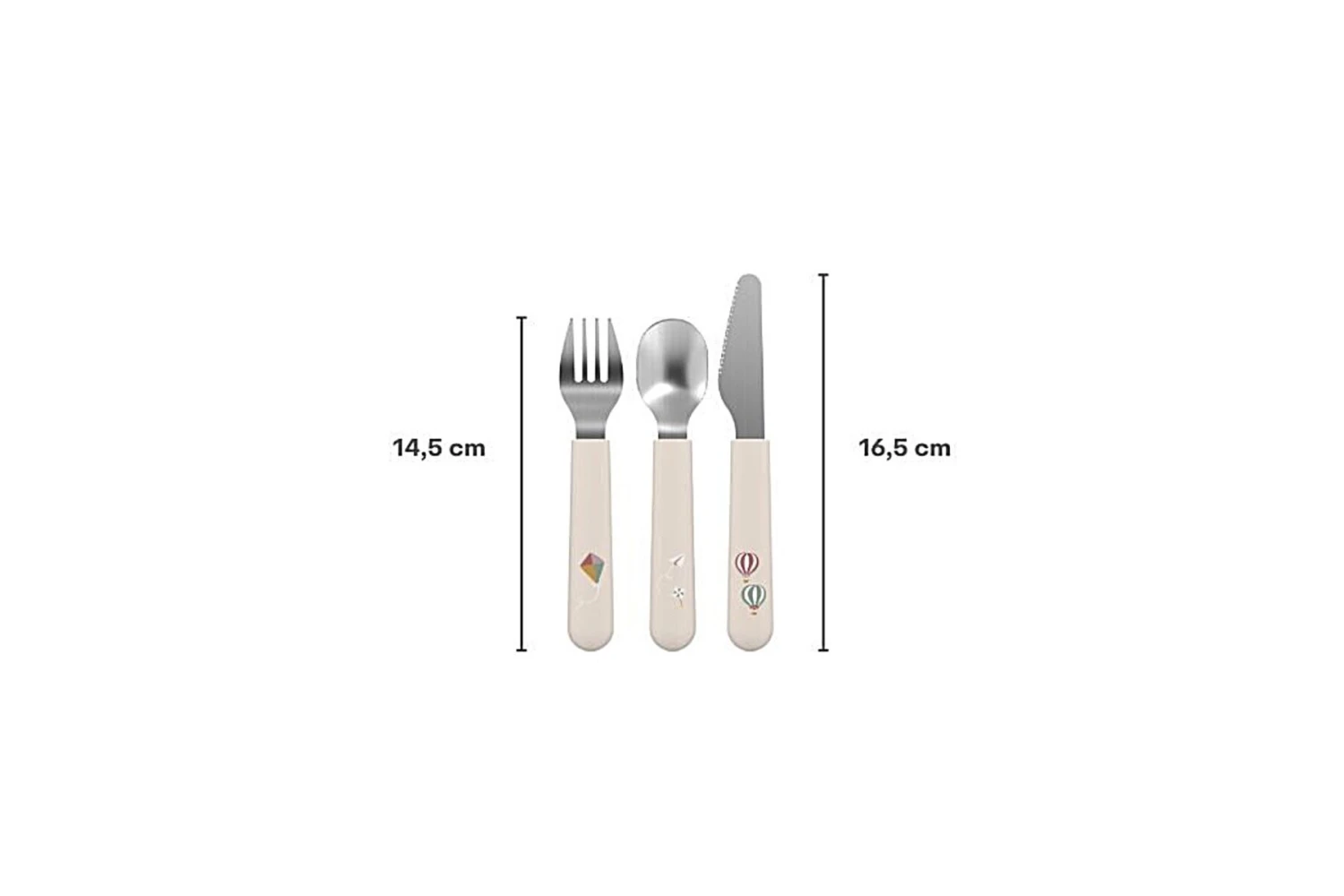 De Mepal Mio kinderbestekset is gemaakt van BPA-vrij kunststof en roestvrij staal en is voorzien van het Forest Friends-patroon. De set bestaat uit drie delen; een vork, een mes en een lepel. Voor de veiligheid is het mes slechts aan één kant voorzien van een snijkant. De kinderbestekset is vaatwasmachinebestendig.