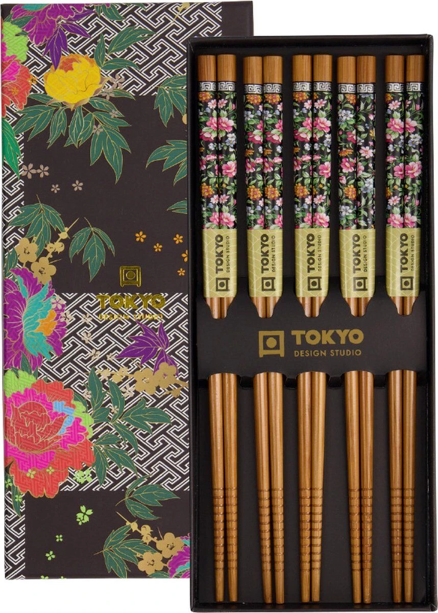 De Oldenhof eetstokjes zijn gemaakt van donkerbruin hout met een bloemenpatroon. De stokjes hebben een lengte van 22,5 cm en komen in een luxe doosje met 5 sets van 2 eetstokjes. Gebruik de eetstokjes voor het eten van Aziatische gerechten als sushi of noedels.