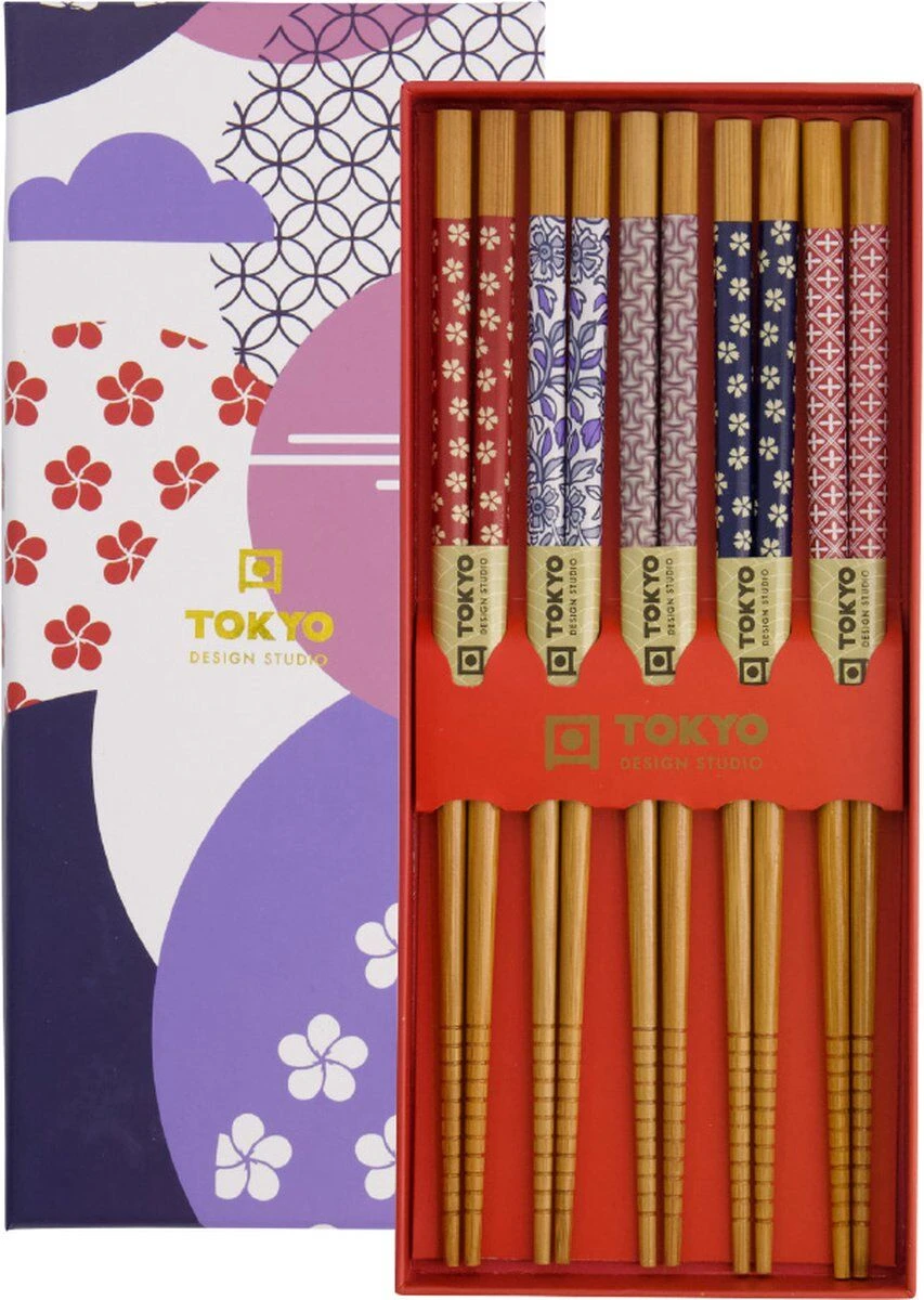 De Oldenhof eetstokjes zijn gemaakt van bruin hout met verschillende patronen. De stokjes hebben een lengte van 22,5 cm en komen in een luxe doosje met 5 sets van 2 eetstokjes. Gebruik de eetstokjes voor het eten van Aziatische gerechten als sushi of noedels.