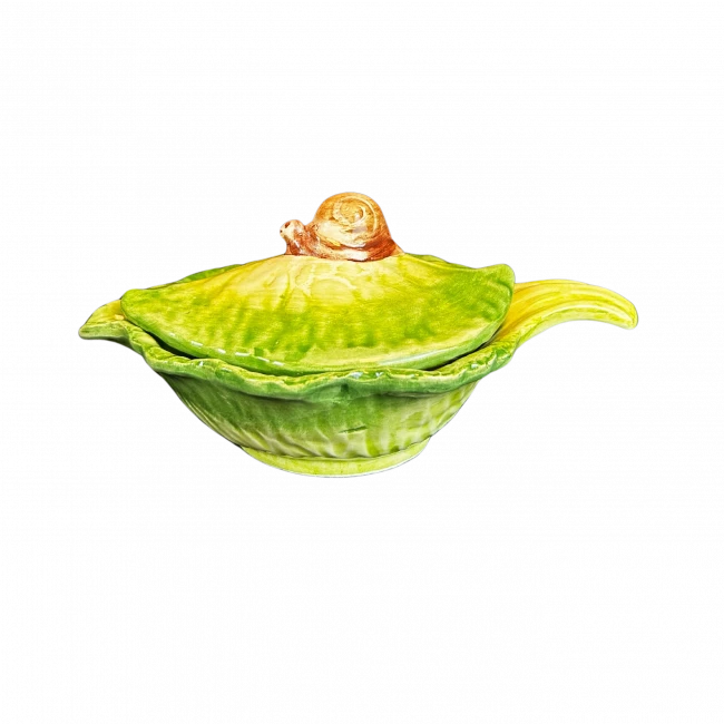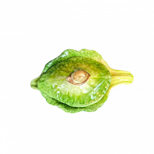 Dit Oldenhof schaaltje is voorzien van een deksel met daar bovenop een escargot. De aardewerk kom heeft een lengte van 19 cm, een breedte van 13 cm en is 8 cm hoog. Gebruik het schaaltje voor het presenteren van escargots of andere warme gerechten.