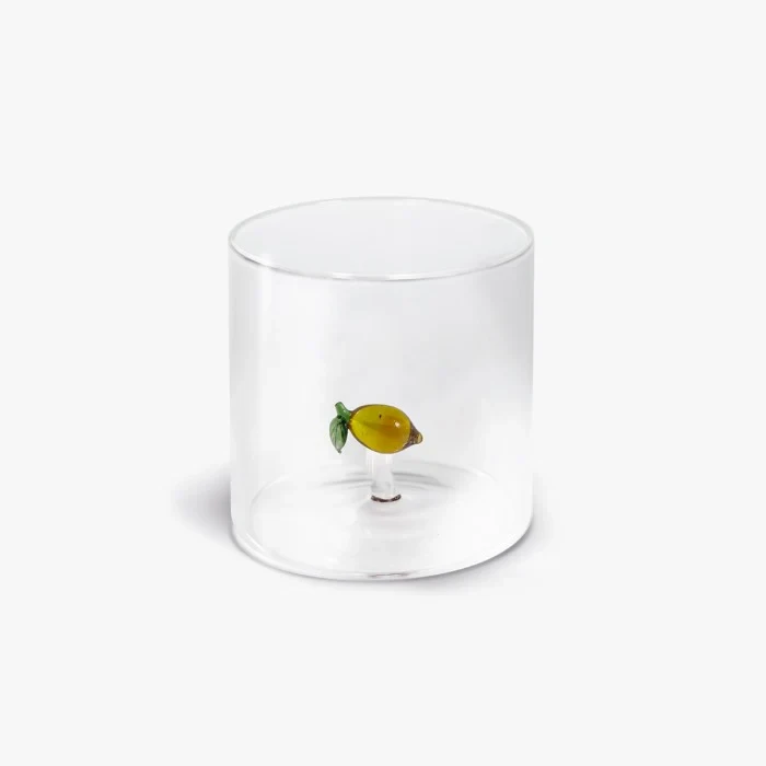 De Oldenhof glazen beker heeft een inhoud van 250 ml en is voorzien van een citroen op de bodem van het glas. Het glas heeft een diameter van 8 cm en een hoogte van 8 cm. Gebruik het glas voor het drinken van water of andere koude dranken.