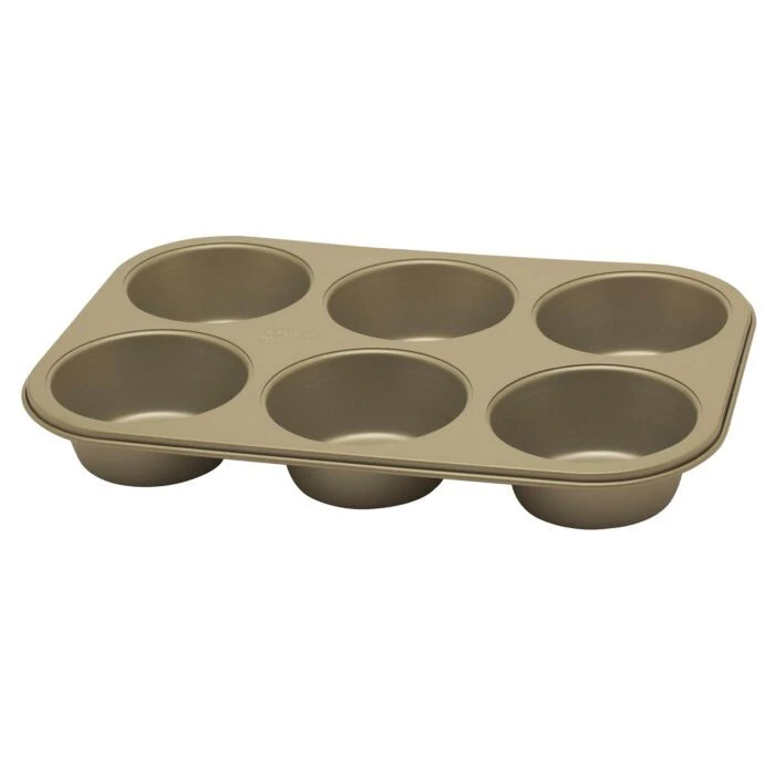 De Oldenhof Golden Heritage bakplaat is 33 cm lang en 22 cm breed, de 6 muffins zijn 3 cm hoog en hebben een diameter van ø 7,5 cm. Gebruik het bakblik voor het bakken van muffins, cupcakes of Yorkshire pudding.