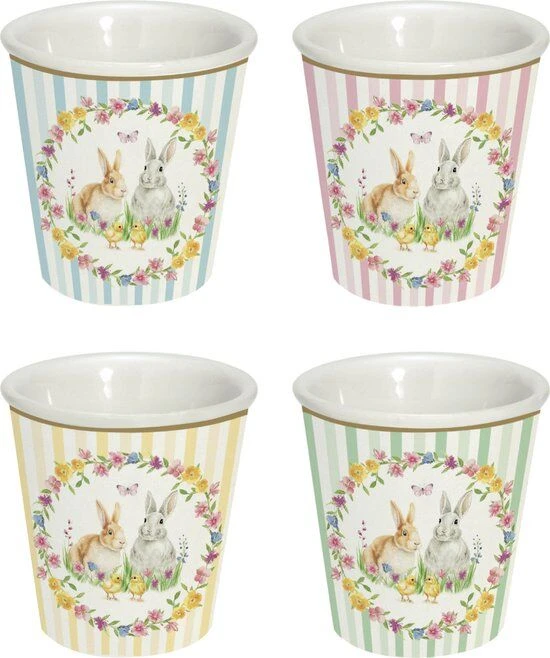 De Oldenhof Happy Easter espressokopjes zijn vervaardigd uit porselein en komen in een set van 4 stuks met elk een andere kleur. De kopjes hebben een inhoud van 100 ml.. Gebruik de espressokopjes voor het serveren van espresso. Deze Pasen espressokopjes zijn een echte toevoeging aan uw servies tijdens de paasdagen!