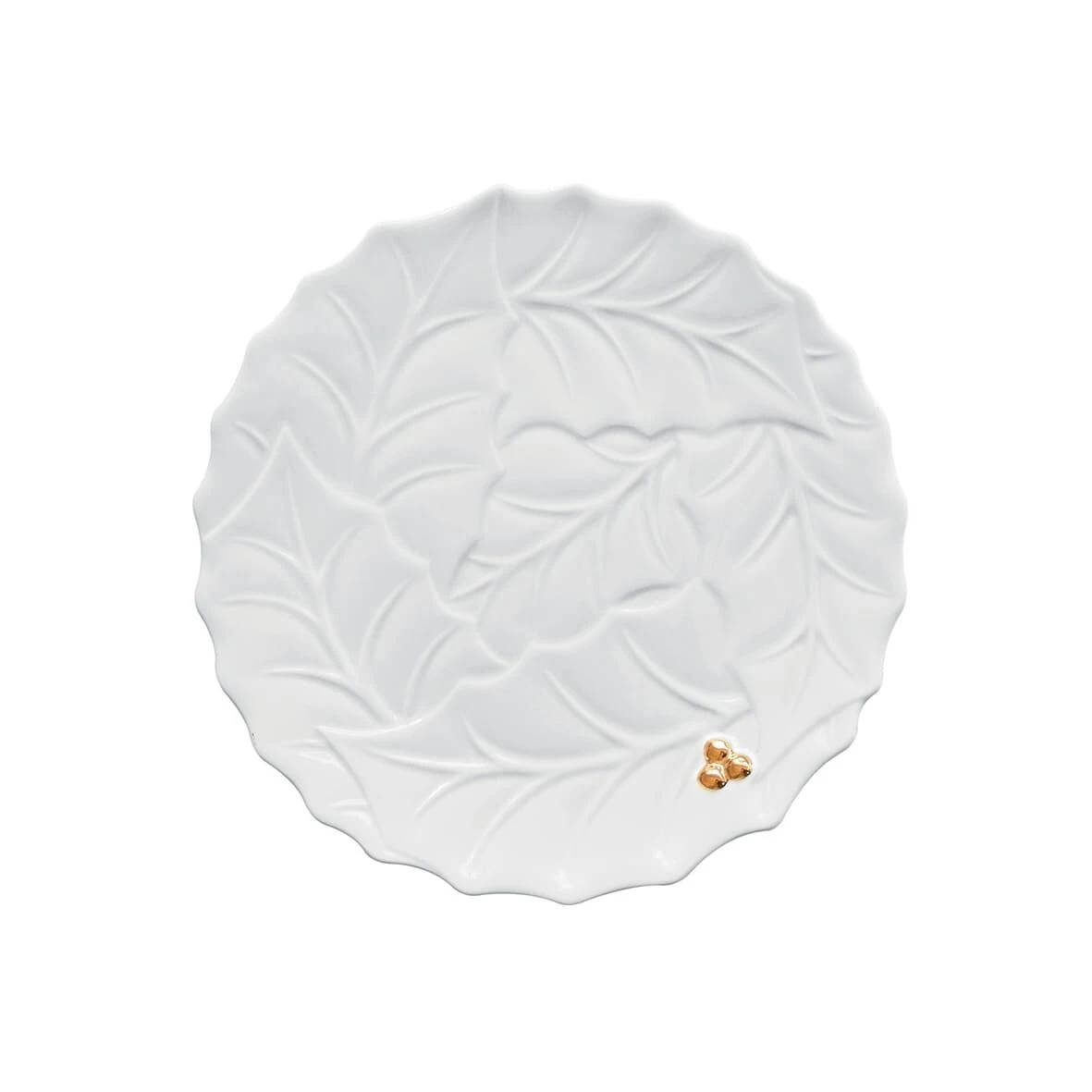 Het Oldenhof Holly & Berries serveerbord is vervaardigd uit porselein en heeft een diameter van 20 cm. Het witte bord is voorzien van een reliëf van hulstbladeren. Gebruik het bord voor het serveren en presenteren van diverse gerechten en hapjes. Dit bord is een echte toevoeging aan uw servies tijdens de feestdagen! Het bord komt in een leuke geschenkverpakking.