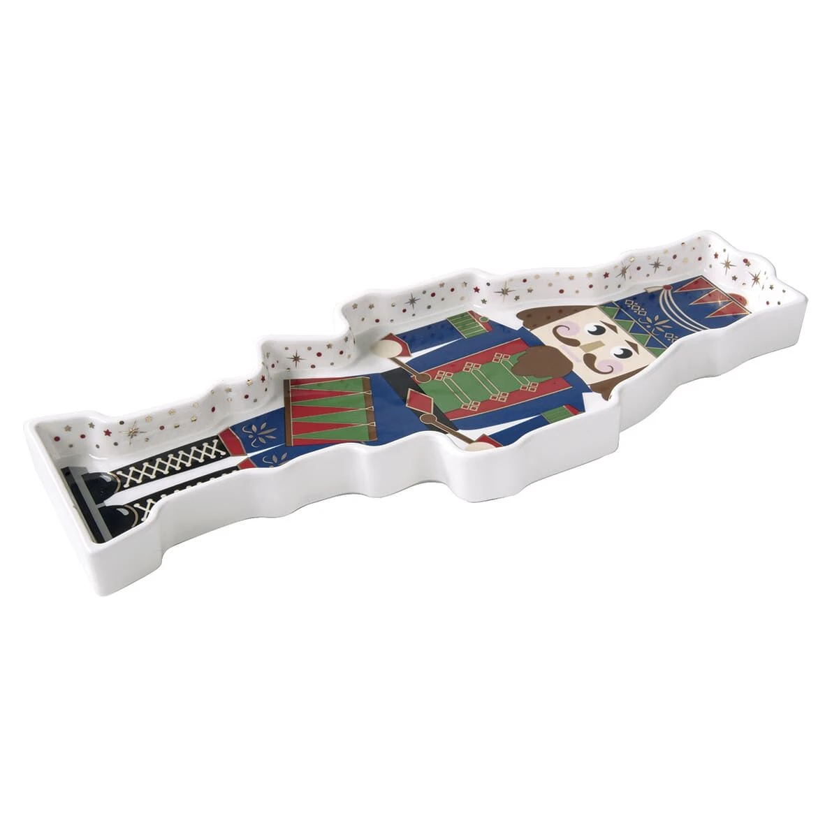 Het Oldenhof Nutcracker serveerbord is vervaardigd uit porselein, heeft de vorm van een notenkraker en heeft een afmeting van 36,5 cm x 14 cm. Gebruik het bord voor het serveren en presenteren van diverse gerechten en hapjes. Dit Kerst bord is een echte toevoeging aan uw servies tijdens de feestdagen! Het bord komt in een leuke geschenkverpakking.