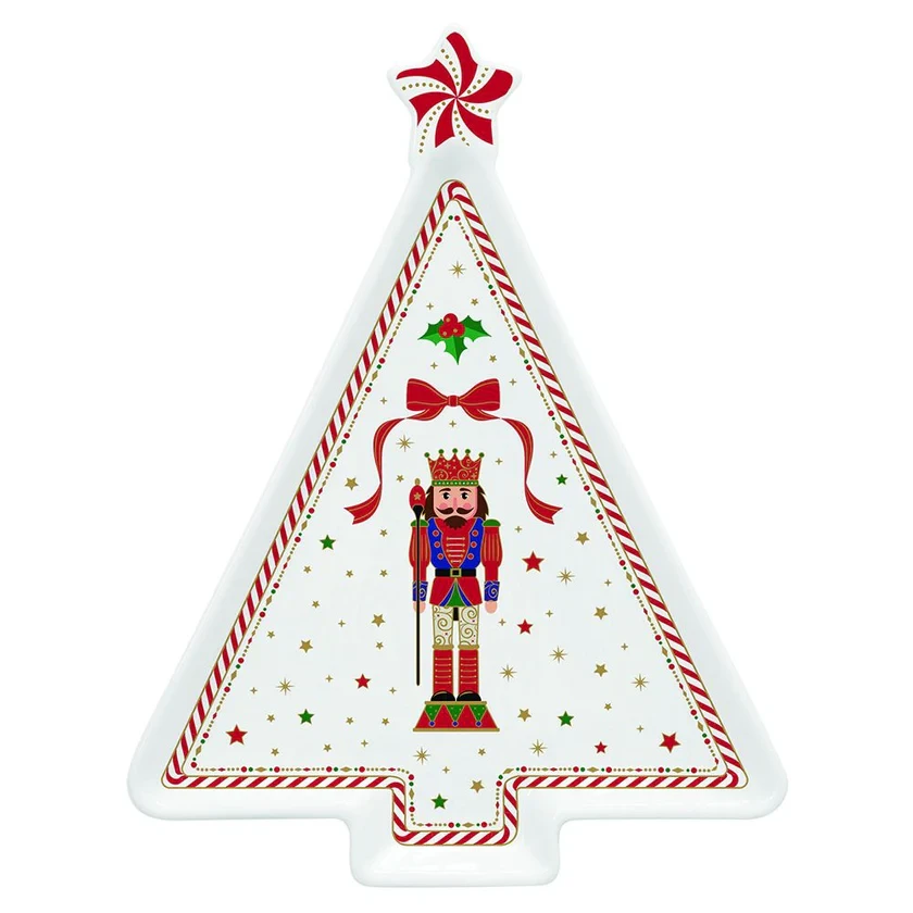 Het Oldenhof Nutcracker Twist serveerbord is vervaardigd uit porselein, heeft de vorm van een kerstboom en heeft een afmeting van 21 cm x 16 cm. Gebruik het bord voor het serveren en presenteren van diverse gerechten en hapjes. Dit Kerst bord is een echte toevoeging aan uw servies tijdens de feestdagen! Het bord komt in een leuke geschenkverpakking.