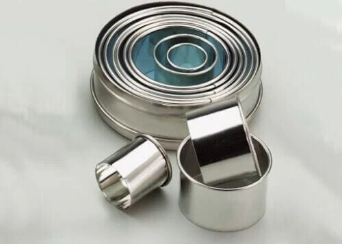 De 11 ronde uitsteekvormen van Oldenhof zijn van roestvrij staal en hebben de verschillende maten. Gebruik de uitsteekvormen voor het uitsteken van marsepein en fondant.