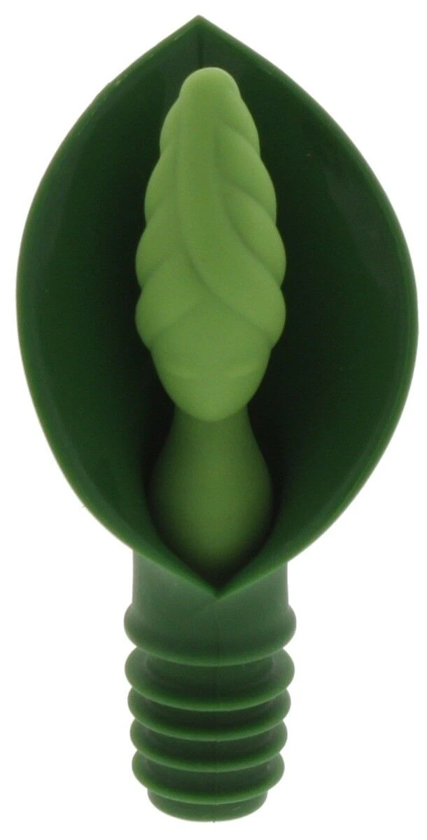 De Leila wijnstop en -schenker van Ototo is gemaakt van groen silicone. De stop heeft de vorm van een blad met een gestileerd vrouwenfiguur als stop. De wijnstop is 10 cm hoog, is 5 cm breed en 4 cm lang. Schenk met de Leila schenker door de stop uit het midden te halen.