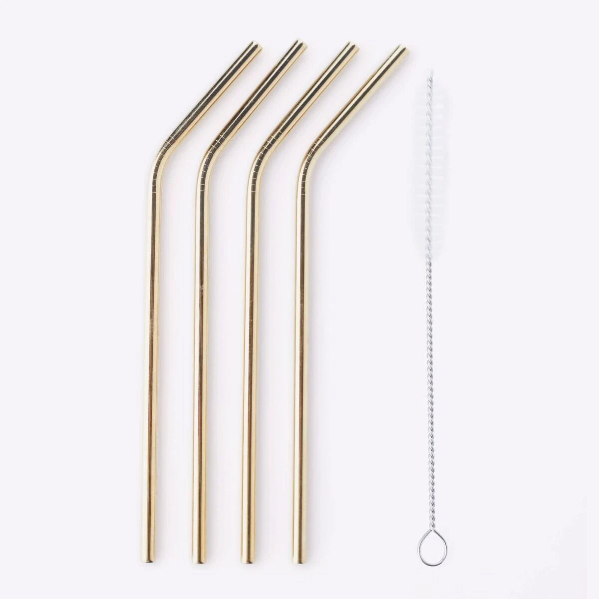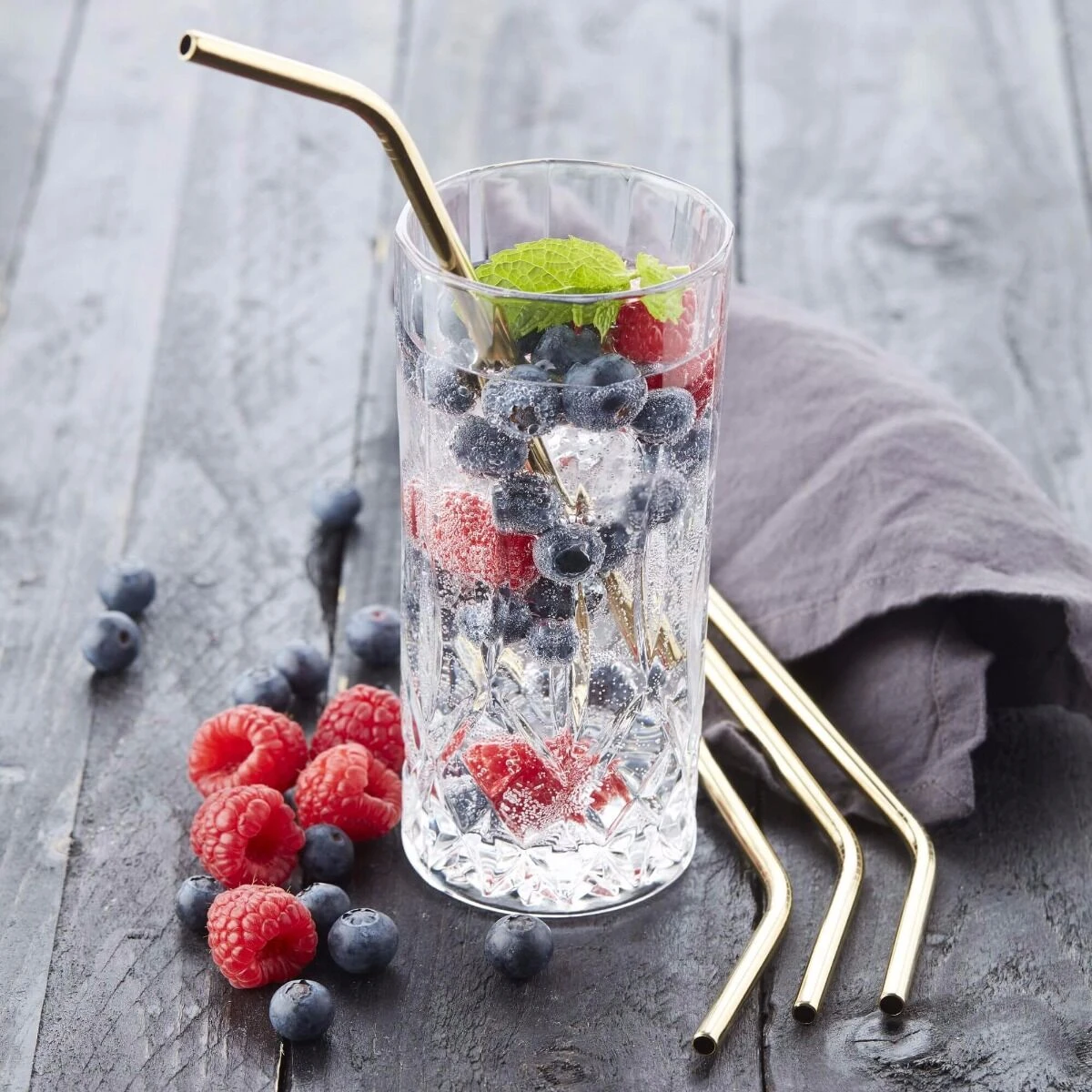 De Point-Virgule cocktailrietjes zijn gemaakt van goud gecoat roestvrij staal, en daardoor herbruikbaar. De set bestaat uit 4 rietjes en een reinigingsborstel. Elk rietje is 20,5 cm lang en heeft een diameter van 6 mm. Gebruik de rietjes voor het drinken van allerlei warme en koude drankjes.