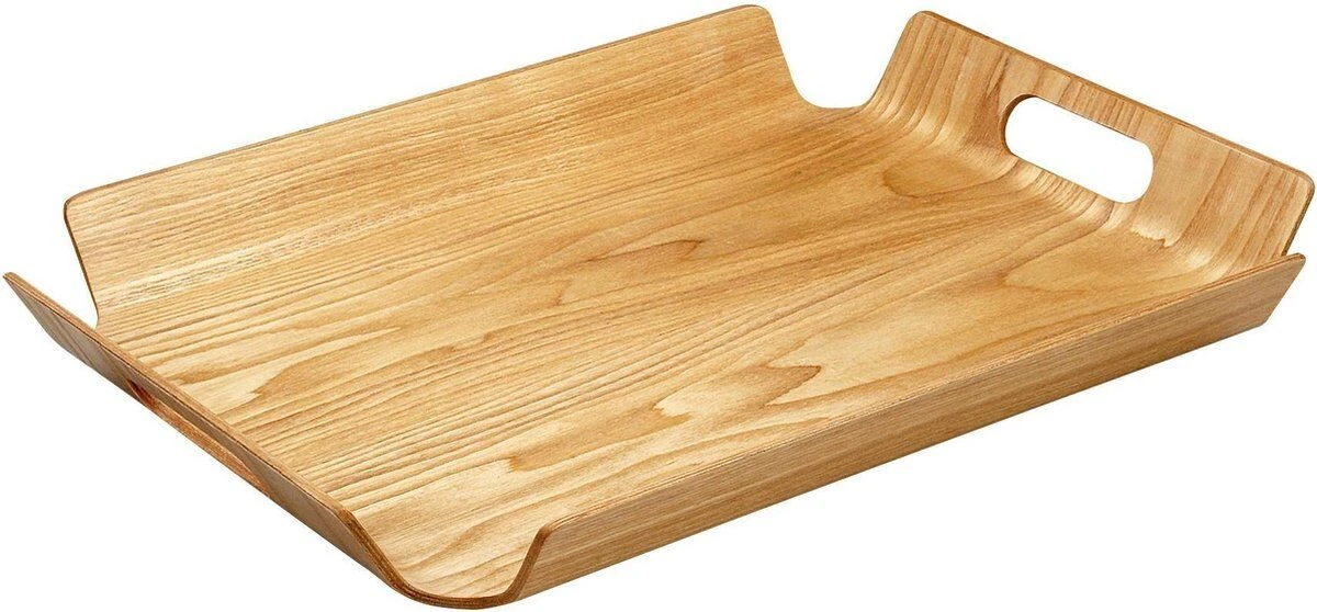 Dit rechthoekige dienblad van Point-Virgule is gemaakt van stevig multiplex in een elegante, moderne vorm en is voorzien van handgrepen. De afmetingen zijn 55 x 40 x 5 cm. Gebruik het dienblad voor het dragen en serveren van bijvoorbeeld drank en gebak.