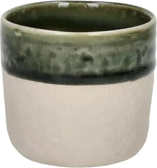 De Pomax Spiro beker heeft een diameter van 7 cm en een hoogte van 6,5 cm. De beker is gemaakt van beige en groen aardewerk. Combineer de beker met ander servies uit de Pomax Spiro lijn.