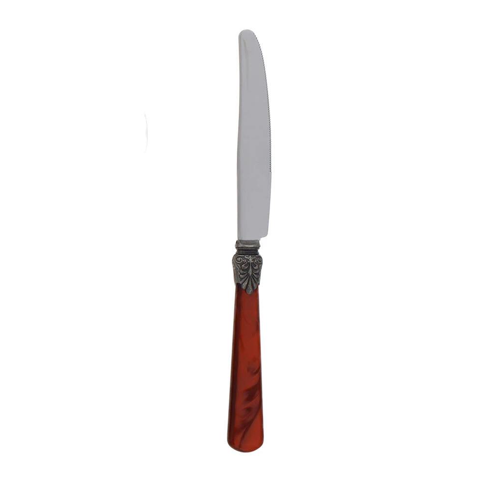Het Rivadossi Sandro Elena tafelmes is gemaakt van roestvrij staal, met een heft van rood acryl. Het heft is voorzien van een decoratief element. Gebruik het mes voor het snijden van diverse gerechten.