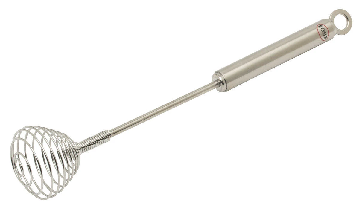 De Rösle klutsgarde is van roestvrij staal en heeft een lengte van 27 cm. De spiraal heeft een diameter van 5 cm en is ideaal voor gebruik in smalle kommen en bekers. Gebruik de garde bijvoorbeeld voor het loskloppen van een ei in een kopje.