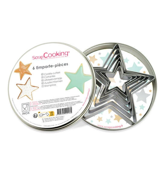 Deze uitsteekvormenset van ScrapCooking is gemaakt van roestvrijstaal en bestaat uit 6 sterren in verschillende maten.