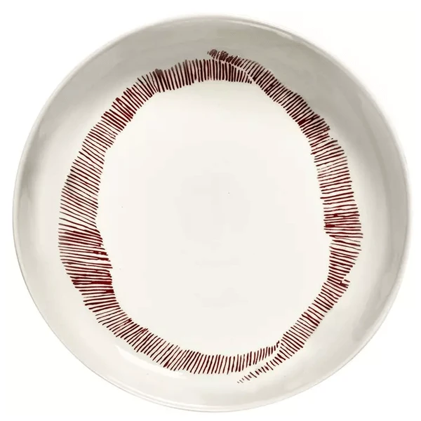 Het Serax Feast by Ottolenghi bord heeft een diameter van 22 cm en is 4 cm hoog. Het aardewerken bord is wit van kleur met een rode schildering.