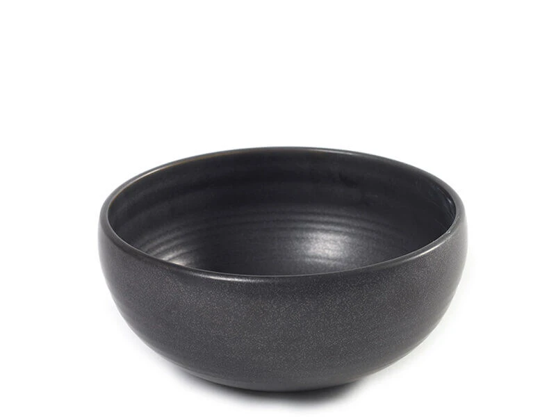 De Serax Pure kom is gemaakt van zwart keramiek. De kom heeft een diameter van 17,5 cm en is 8 cm hoog. Ontworpen door Pascale Naessens. Voor het presenteren van kleine gerechten of voor het serveren van snacks als noten bij de borrel.