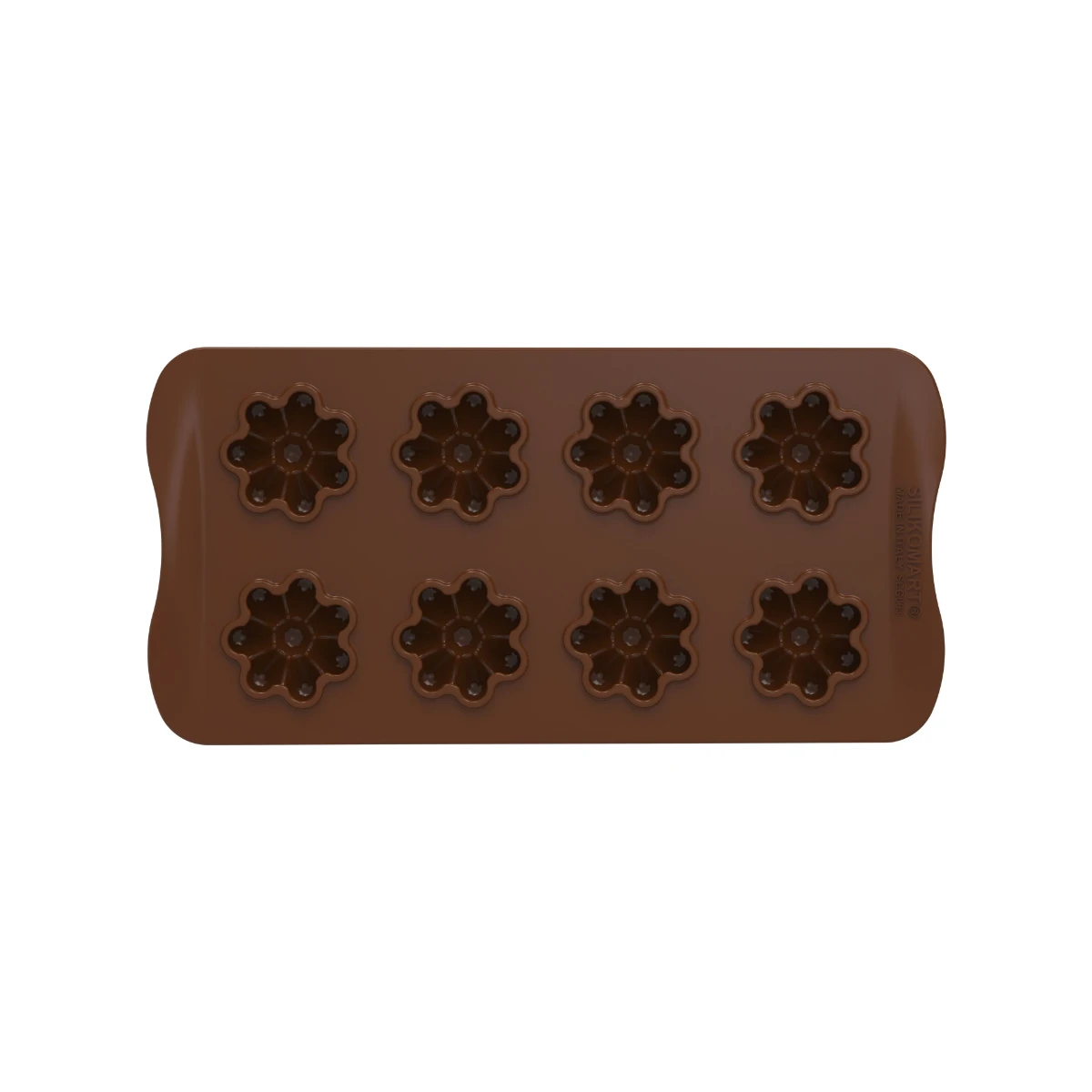 De Silikomart chocoladevorm heeft acht vormpjes van bloemen. De chocoladevorm is gemaakt van siliconen en de individuele vormpjes hebben een diameter van 3,8 cm. Gebruik de chocoladevorm om chocolade te maken in de vorm van bloemen.