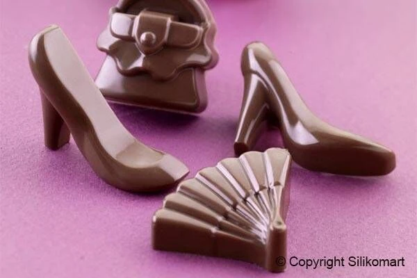 De Silikomart EasyChoc ‘Fashon’ is een siliconen vorm voor het maken van 14 bonbons met een kleding thema. De vorm bevat vormen voor waaiers, pumps en tassen. Elk van de chocolaatjes is circa 4,1 cm lang, 3 cm breed en heeft een inhoud van 6,8 ml. De gehele vorm is 21 cm lang, 11 cm breed met een inhoud van 96 ml.