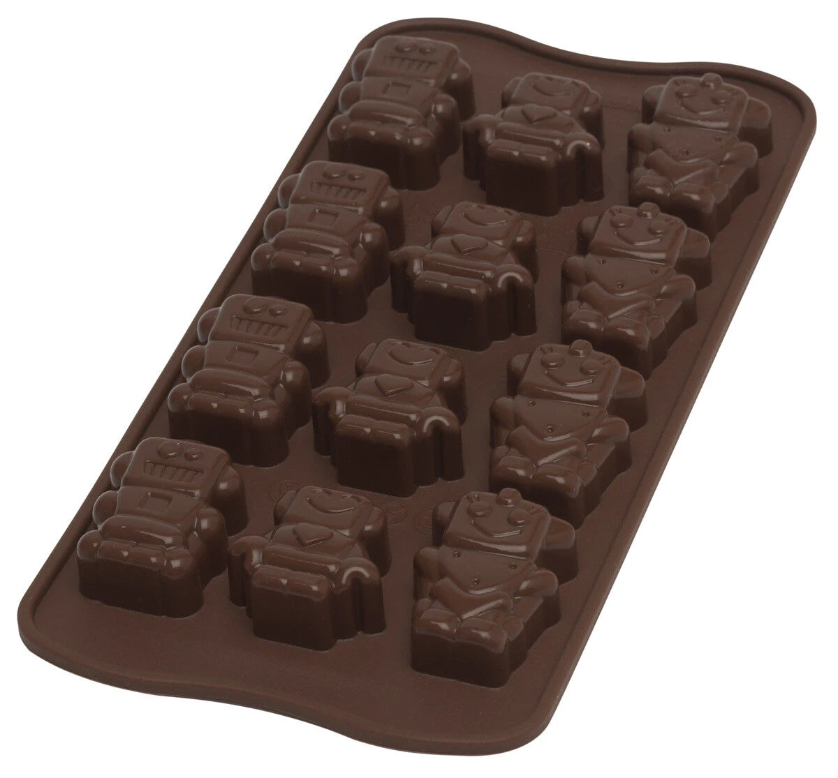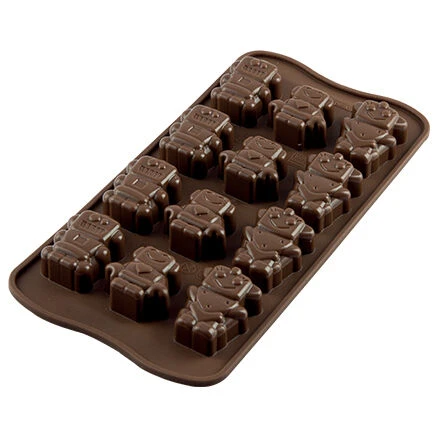 De Silikomart EasyChoc Robochoc bakvorm is gemaakt van bruin silicone en heeft een afmeting van 21 bij 11 cm. Maak bijvoorbeeld bonbons of snoepjes. De vorm wordt geleverd met een recepten.