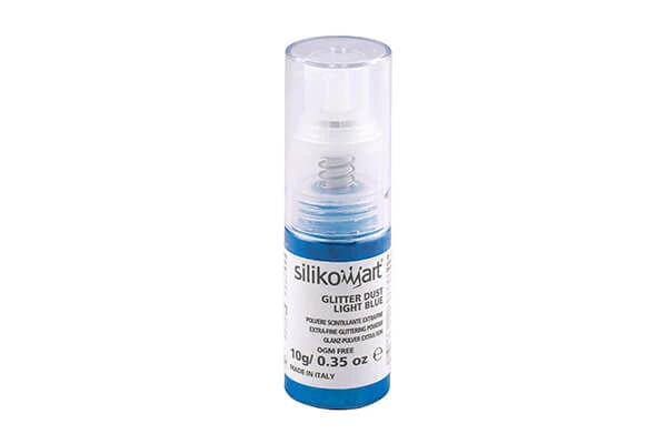 De blauwe Silikomart Glitter Dust komt in een spray met een inhoud van 10 gram en is ideaal om uw taarten, cakes en bijvoorbeeld chocolade mee te decoreren. Spray licht voor een subtiele glitter of spray lang op dezelfde plaats voor een echt glittereffect.