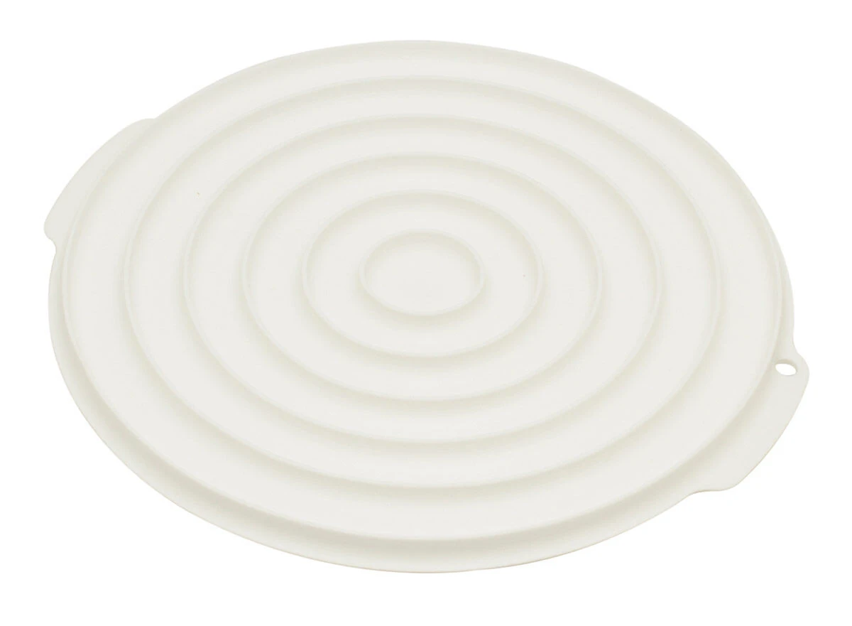 De ronde Silikomart Professional Insert Decor is gemaakt van wit silicone en heeft een diameter van 24 cm. De bakvorm heeft aan elke zijde 6 ringen met verschillende diameters. Aan de ene kant is dat ø 2 cm, ø 6 cm, ø 10 cm, ø 14 cm, ø 18 cm, ø 22 cm. De andere zijde heeft ringen in de diameters: ø 4 cm, ø 8 cm, ø 12 cm, ø 16 cm, ø 20 cm en ø 24. De ringen zijn 1 cm hoog en hebben een halfrond profiel.