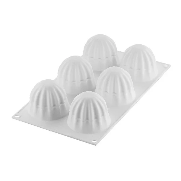 De Silikomart Supernova 105 bakmat is gemaakt van siliconen. Het siliconen materiaal is geschikt voor koude en warme temperaturen. De bakmat heeft 6 vormpjes met een diameter van 6,4 cm en is 5,4 cm hoog. Gebruik de Supernova 105 bakmat om je baksels in een speciale vorm van een kerstboom te gieten.