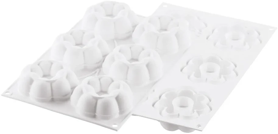 De Silikomart Truffle Crown 90 bakmat is gemaakt van siliconen. Het siliconen materiaal is geschikt voor koude en warme temperaturen. De bakmat heeft 6 vormpjes met een diameter van 8,2 cm en is 2,9 cm hoog. Gebruik de Truffle Crown 90 bakmat om je baksels in een speciale vorm van een kerstboom te gieten.
