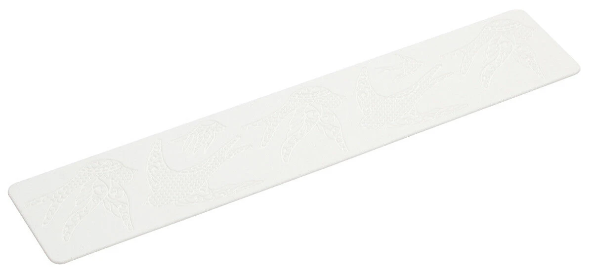 De Silikomart Tricot Birds siliconen decoratiemat is 40 cm lang en 8 cm breed. Voorzie uw taarten, cupcakes of koekjes van decoratieve en smakelijke suikerlagen.